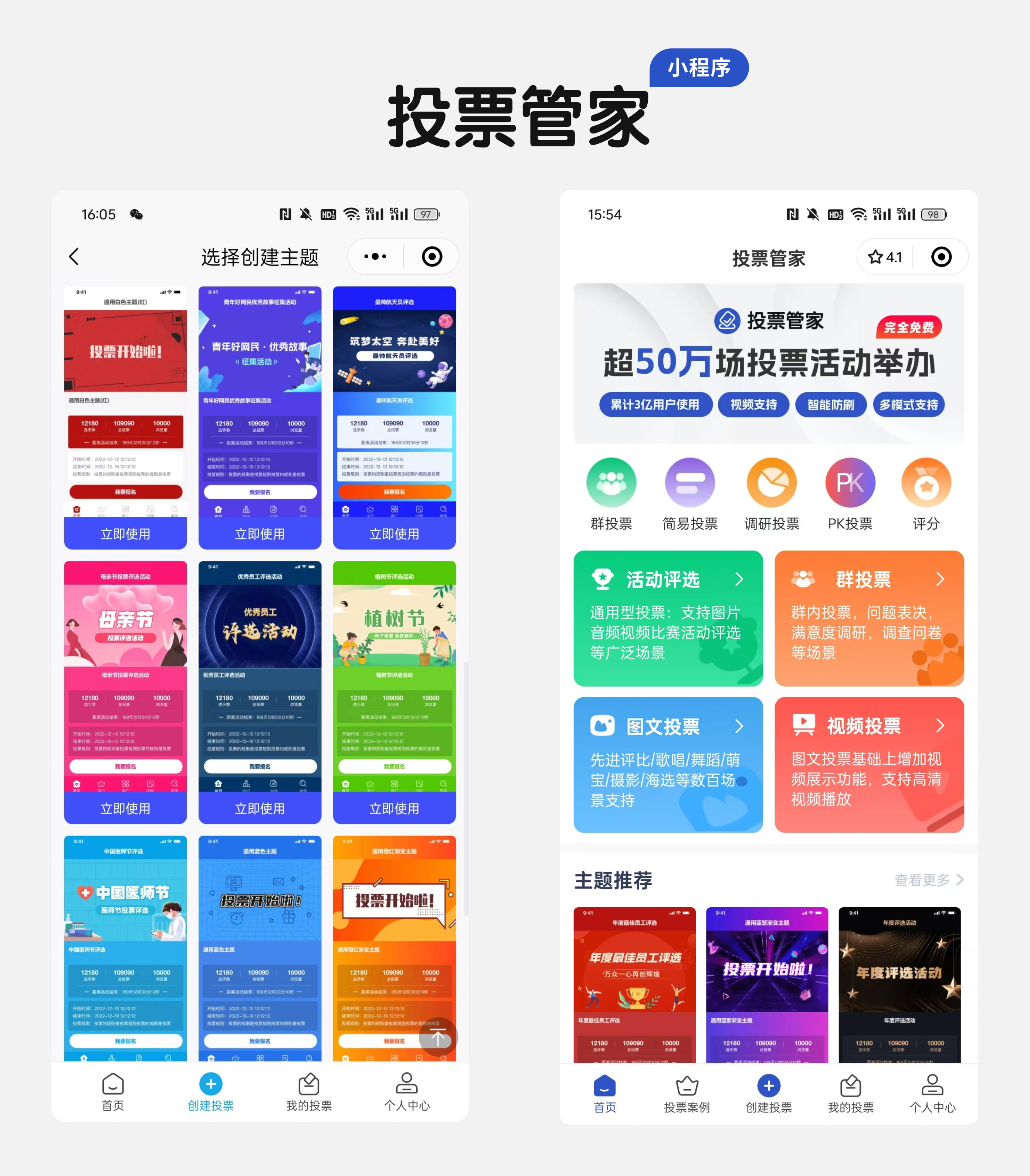 第一步、在投票管家PC端网站中,选择“活动评选”功能。在活动评选中,选择一个适合元旦文艺会演节目投票活动的模板。