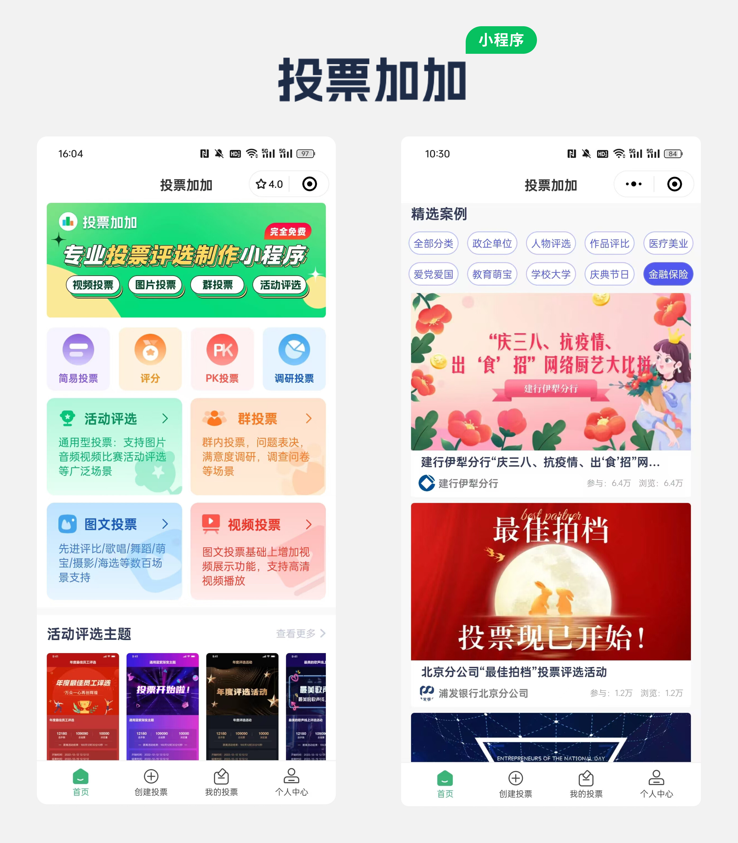 微信搜索小程序 投票加加, 或在PC端进入投票加加官网,投票加加有海量模版可以使用。