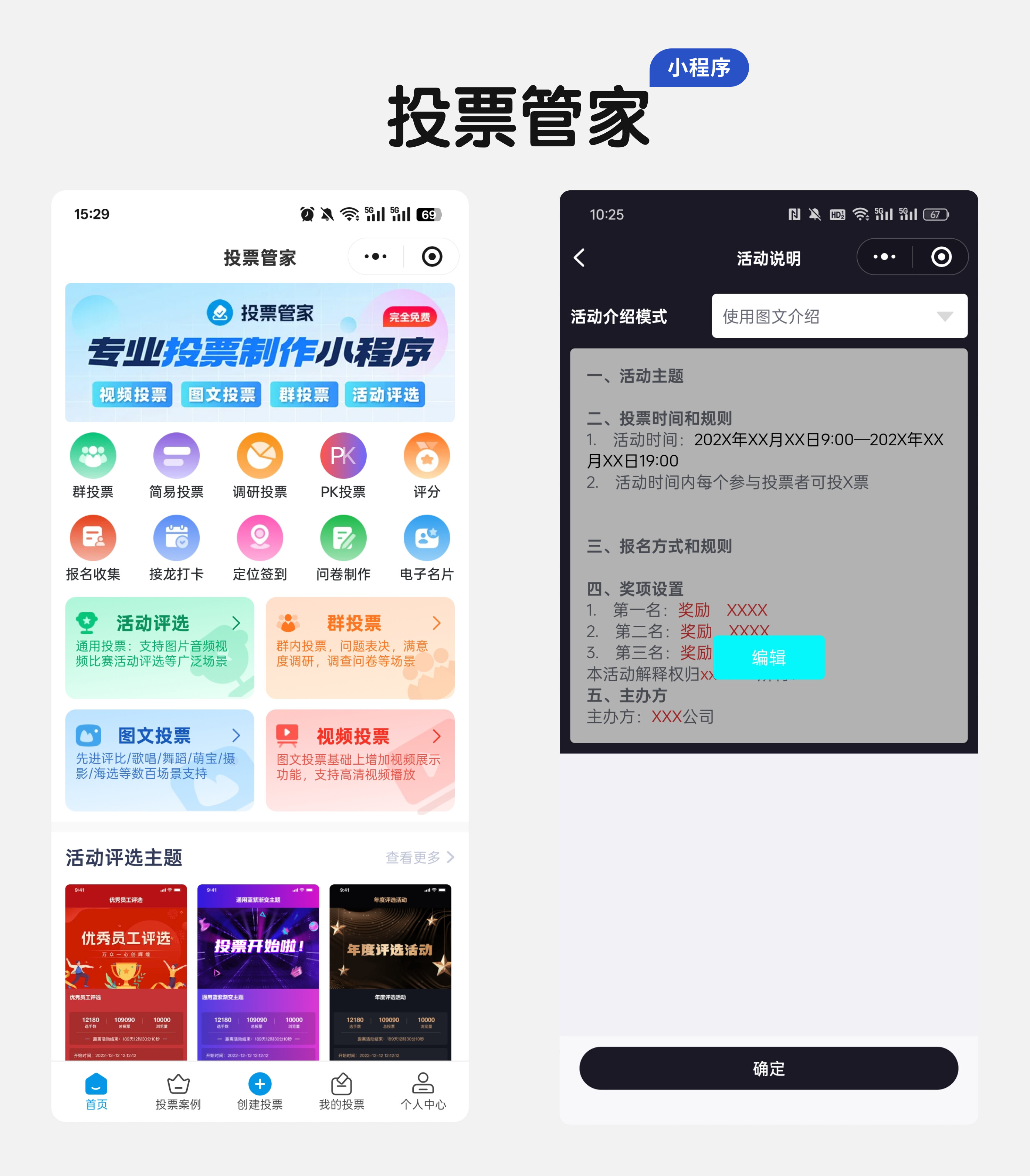 视频投票:如果参赛作品有短视频(比如延时摄影、春日Vlog),选这个模板更直观。