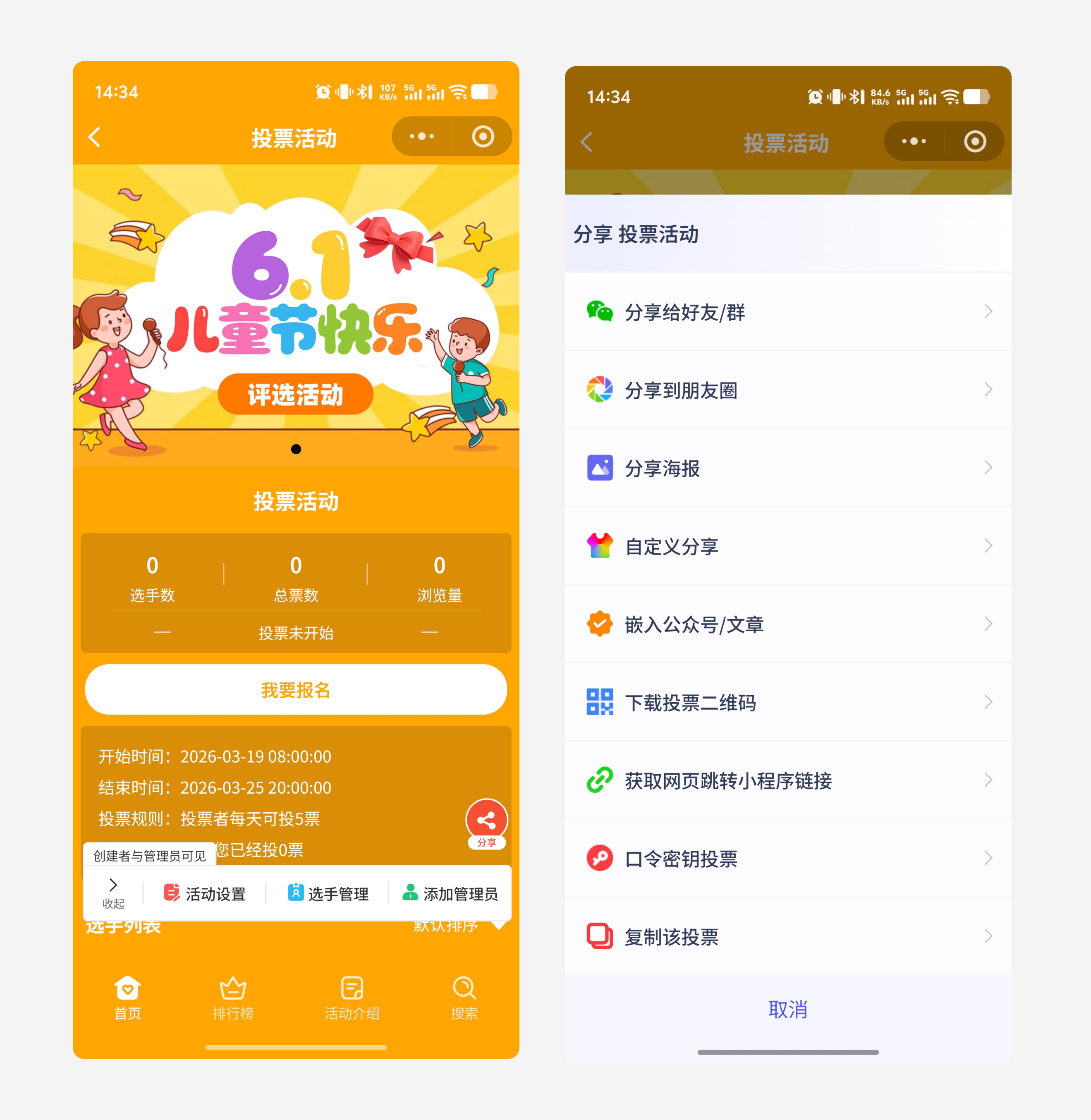 活动介绍:写清评选目的、投票规则(如每人每天限投 1 票)、获奖福利,让参与者一目了然。